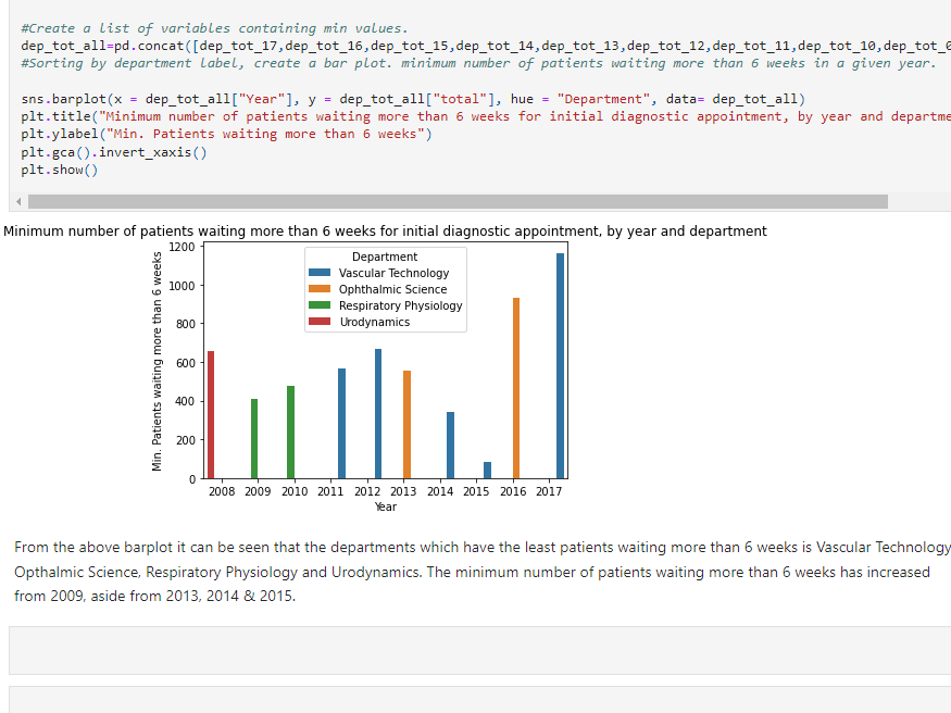 A data science project created in Python. Created to analyse wait times for consultant diagnostic appointments. Uses Pandas, NumPy and Matplotlib. Also I draw some statistical inference from the data.